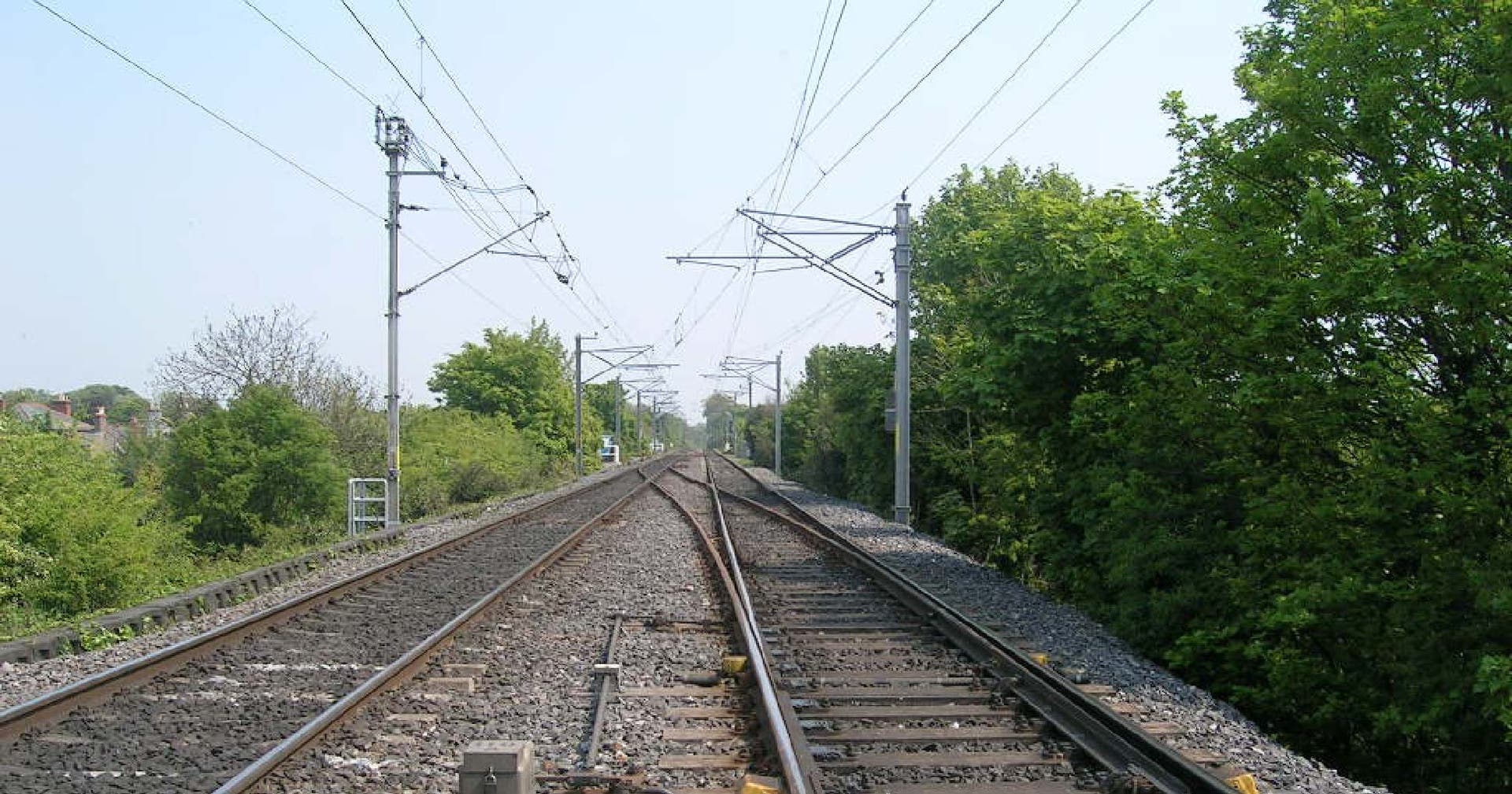 View of typical section of twin track electrified rail line